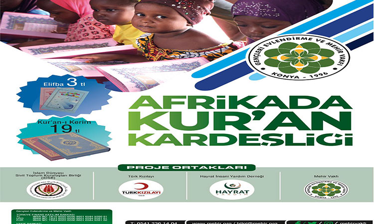 Değerli Bağışçılarımız; Afrika'da Kur'an Kardeşliği projemiz kapsamında 17 ülkeye göndereceğimiz Kur'an-ı Kerim'lerin 1 adet birim fiyatı KDV dahil 19.00 TL, Elifba'ların 1 adet birim fiyatı KDV dahil 3.00 TL'dir. desteklerinizi bekliyoruz. 0541 236 14 04 www.mehir.org